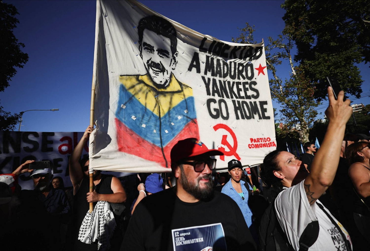 Apoiadores do ex-presidente venezuelano Nicolás Maduro realizaram um protesto em Buenos Aires, Argentina, nesta segunda-feira. A manifestação foi uma reação ao ataque norte-americano à Venezuela, que resultou na captura de Maduro e de sua esposa alguns dias antes. As acusações formais apresentadas contra o líder venezuelano incluem conspiração para narcoterrorismo, conspiração para importação de cocaína e posse de metralhadoras e dispositivos destrutivos.